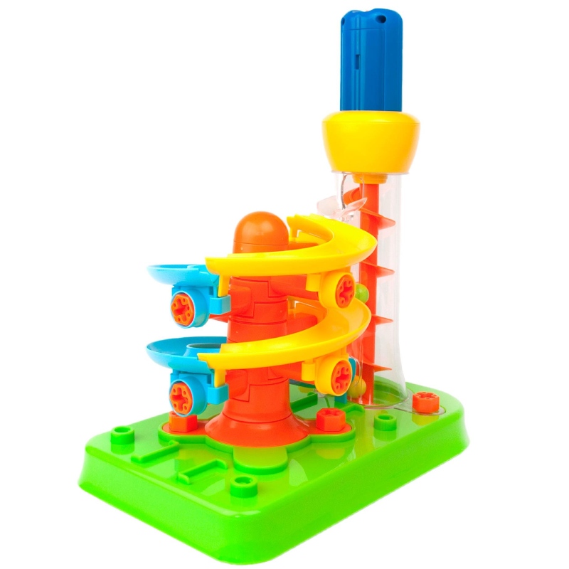 Конструктор Edu-Toys Гірка-спіраль з інструментами дозволяє малюкам зібрати гірку для кульок за допомогою дитячих інструментів з набору. А далі можна запускати кульки і спостерігати, як вони скочуються донизу по спіральній гірці. Така розвивальна іграшка сподобається дітям від 3 років.