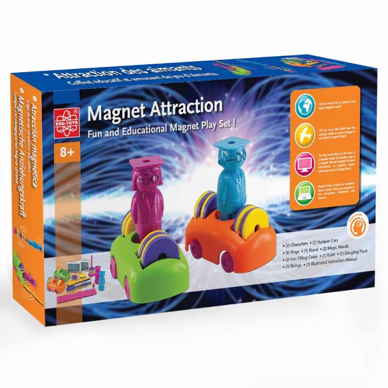 Набір для досліджень Edu-Toys Досліди з магнітами дозволяє в ігровій формі продемонструвати притягання і відштовхування магнітів, познайомити дітей з явищем магнетизму. Комплект з усіма необхідними деталями і завданнями створений для розвивальної гри дітей від 8 років.