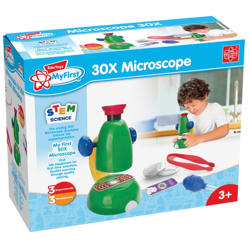 Барвистий мікроскоп спеціально розроблений для юних дослідників, щоб дати уявлення про біологію та оптику, зацікавити вивченням наук. Такі розвивальні іграшки важливі для пізнання нового, тренування спостережливості, уважності, мислення, інтелекту. Дитячий мікроскоп серії My First підходить для занять удома, у дитячому садку, початковій школі, центрах розвитку. Рекомендований за методикою STEM.