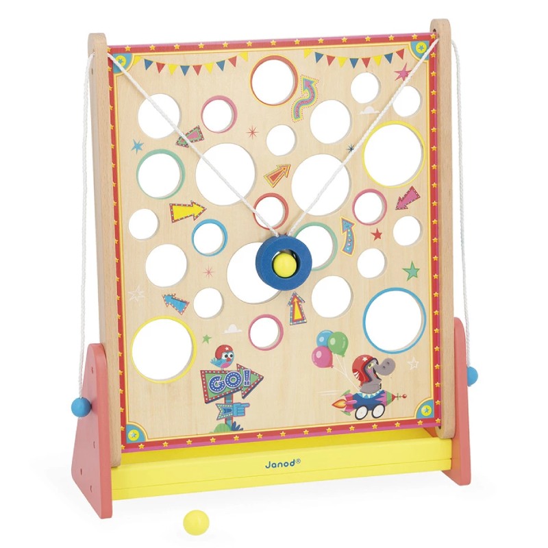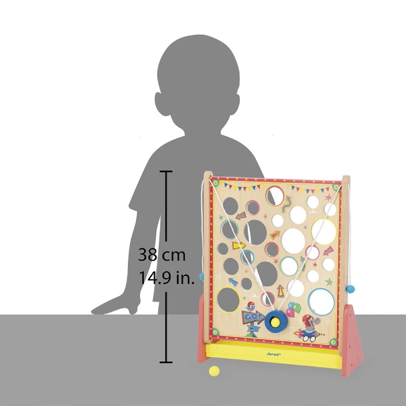 Вертикальний виклик обов'язково зацікавить всю родину, навіть наймолодших дітей (від 5 років). Мета цієї вертикальної гри на вміння проста: тягнучи за мотузки, розташовані по боках платформи, ви поступово піднімаєте м'яч вгору до верху траси... Але остерігайтеся дірок, це справжній лабіринт! Діти полюблять кидати виклик собі та своїм друзям у цій грі, що поєднує координацію та спостереження, все це в святковій атмосфері ярмарку!