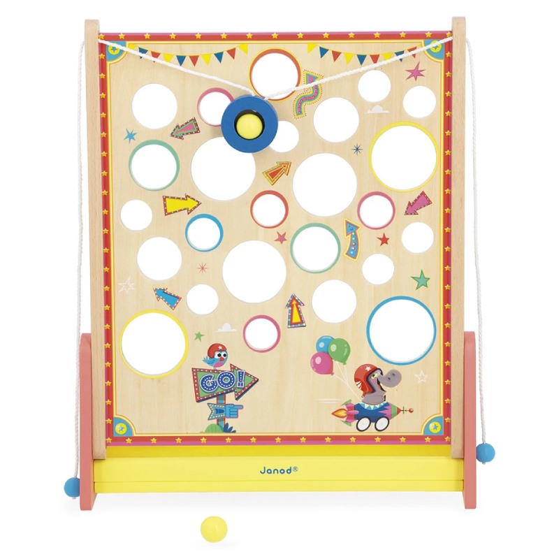 Шукаєте шалені ігри на вміння? Дерев’яна гра на спритність від 5 років: керуйте двома мотузками й проведіть кульку вгору лабіринтом, уникаючи отворів. Розвиває координацію, увагу й терплячість, підходить для сімейних змагань.