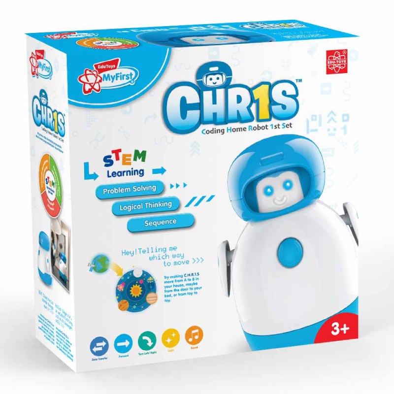 Мій перший програмований робот Edu-Toys познайомить дітей із цікавим світом комп'ютерних програм і робототехніки. Робота звуть C.H.R.1.S. – що в перекладі означає «програмований домашній робот першої серії випуску». Набір для навчання дітей програмуванню не вимагає використання гаджетів і створений для дітей від 3 років.