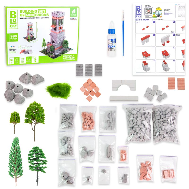 Комплектація: коробка, цеглинки - 996 ел., клей ПВА, пензлик - 1 шт., комплект додаткових елементів - 1 шт., інструкція.