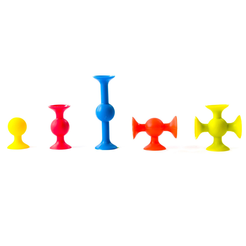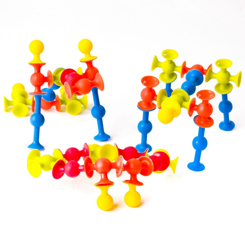 Комплект складається з 5 видів силіконових з`єднувачів з різною кількістю присосків: сині та червоні з 2-ма, помаранчеві з 3-ма, світло-зелені з 4-ма, лимонні з однією. Ви можете створити справжню тривимірну конструкцію, спробуйте!
