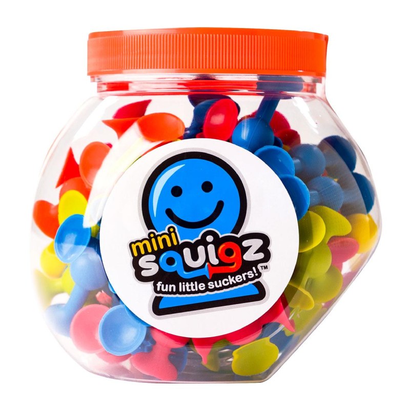 MiniSquigz – великий набір з 75-ти маленьких різнокольорових присосок. Всі елементи чудово кріпляться до будь-якої гладкої поверхні і один до одного. Намагалися їх роз`єднати? Ці "малюки" тримаються дуже міцно і не залишають слідів. Їх можна мити.