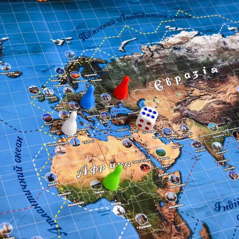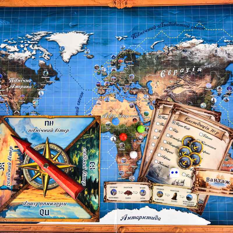 «Навколо світу» — це захоплива настільна гра для щирих любителів подорожей! Готові кинути виклик океану та стати справжнім морським вовком? У цій грі ви прокладете власний курс через порти всього світу, навчитеся «приборкувати» вітер за допомогою спеціальної рулетки та доставляти вантажі швидше за інших мандрівників. Це справжній географічний квест із 5 режимами складності та 110 картками прапорів. Збирайте команду, розгортайте карту — велика кругосвітня подорож починається прямо зараз!