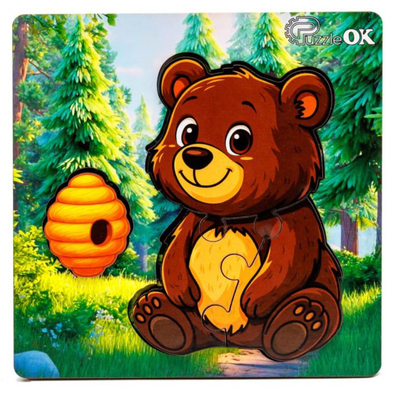 Дерев'яний сортер А6 "Лісовий ведмедик" Puz-88754 PuzzleOk 4 деталі