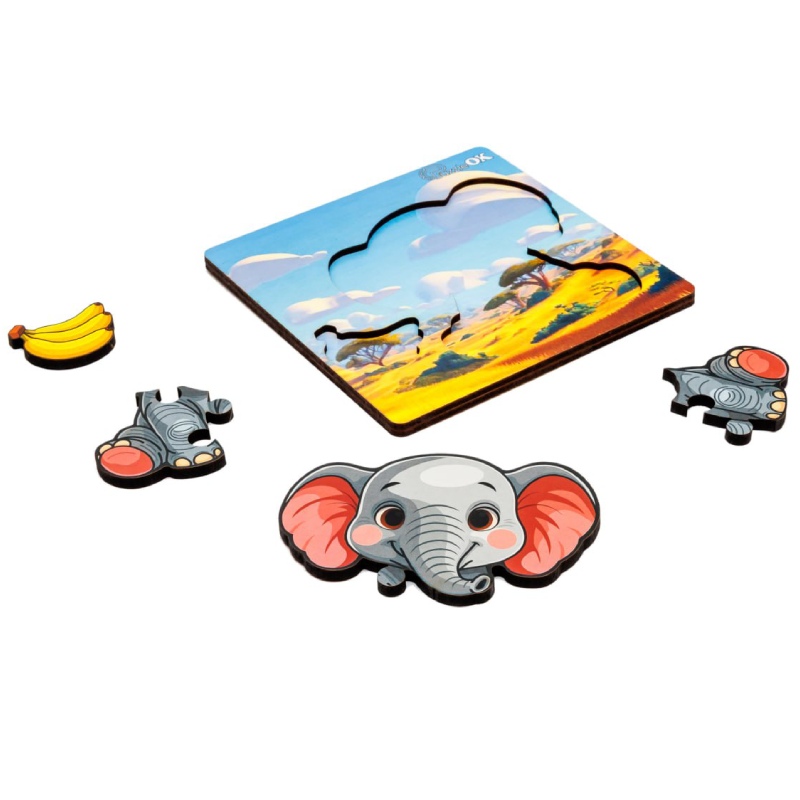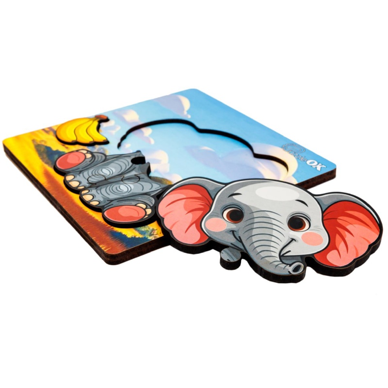Дерев'яний сортер А6 "Веселе слоненя" Puz-88752 PuzzleOk 4 деталі