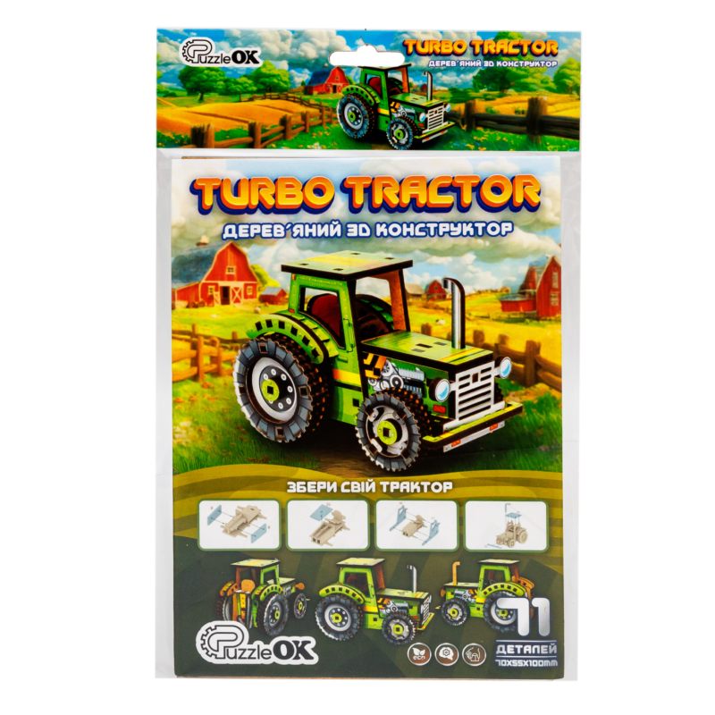 Дерев'яний 3D конструктор Turbo Tractor Puz-00960 від українського виробника ПаззлОк
