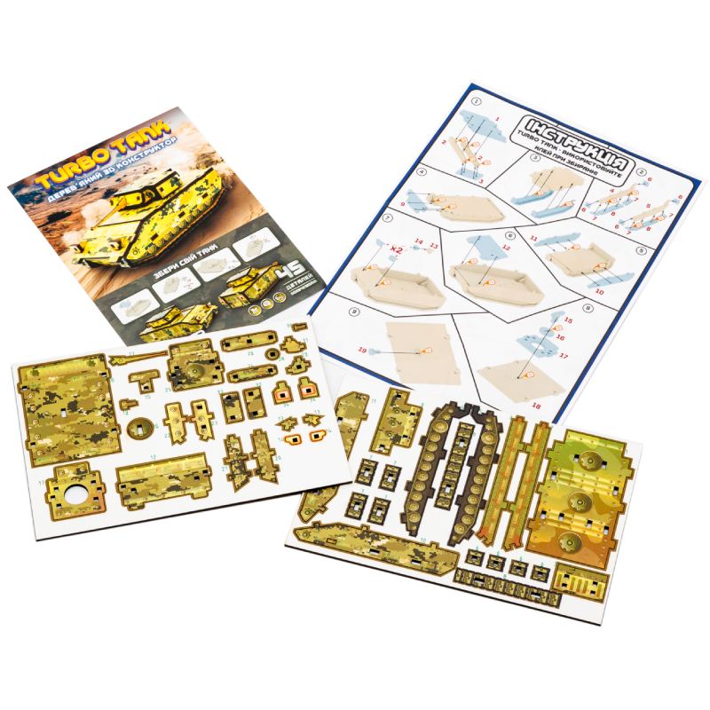 Шукаєте захопливий подарунок для юного інженера чи поціновувача військової техніки? Дерев’яний конструктор «Turbo Tank» від PuzzleOK — це не просто іграшка, а справжній 3D-пазл, що дозволяє власноруч створити реалістичну модель броньованої машини.