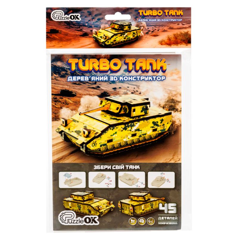 Дерев'яний 3D конструктор “Turbo Tank” Puz-00973 PuzzleOk 45 деталей