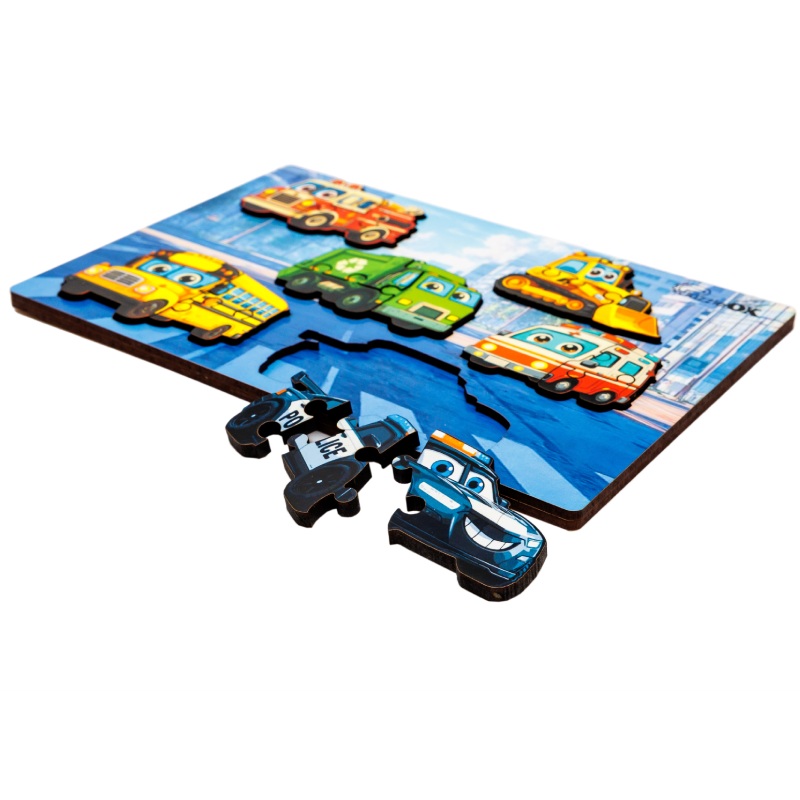 Пазл-вкладиш у форматі A5 допомагає малюку вивчати види міського транспорту, розвиває дрібну моторику, логіку, увагу та координацію рухів. Яскраві деталі легко вставляються у відповідні отвори, роблячи навчання цікавим і захопливим.