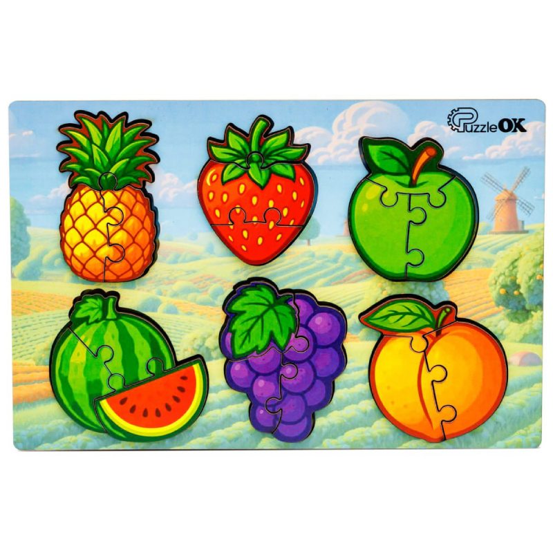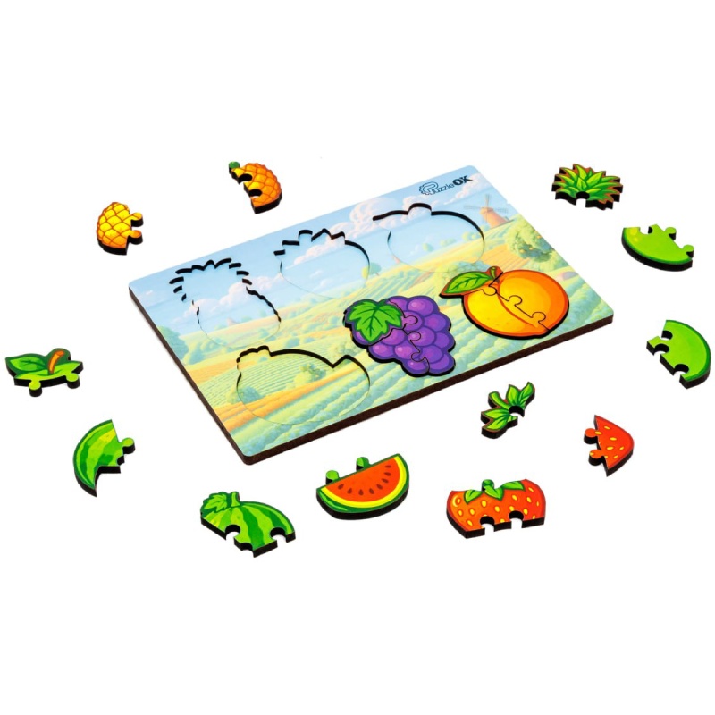 Розвиваючий дерев'яний сортер PuzzleOK «Розумний світ. Веселі фрукти» у популярному форматі A5 — чудовий вибір для дітей від 3 років. Ця яскрава гра-пазл-вкладиш містить 18 деталей, які допомагають малюку розвивати дрібну моторику, координацію рук і очей, логічне мислення та увагу під час гри з фруктовими фігурками.